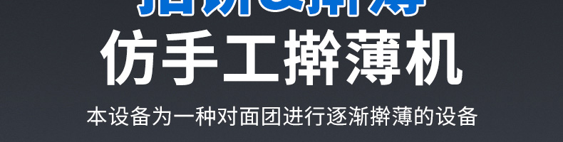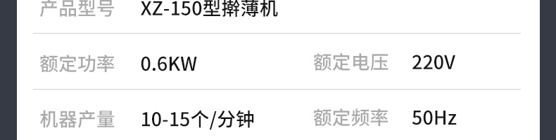 XZ-150型搟薄機,為一種對面團可進行氣動拍餅或仿手工搟薄的設備,可根據用戶需要對面團的直徑、厚度進行調整并將面團按照設定的規格進行搓圓摔搟薄。