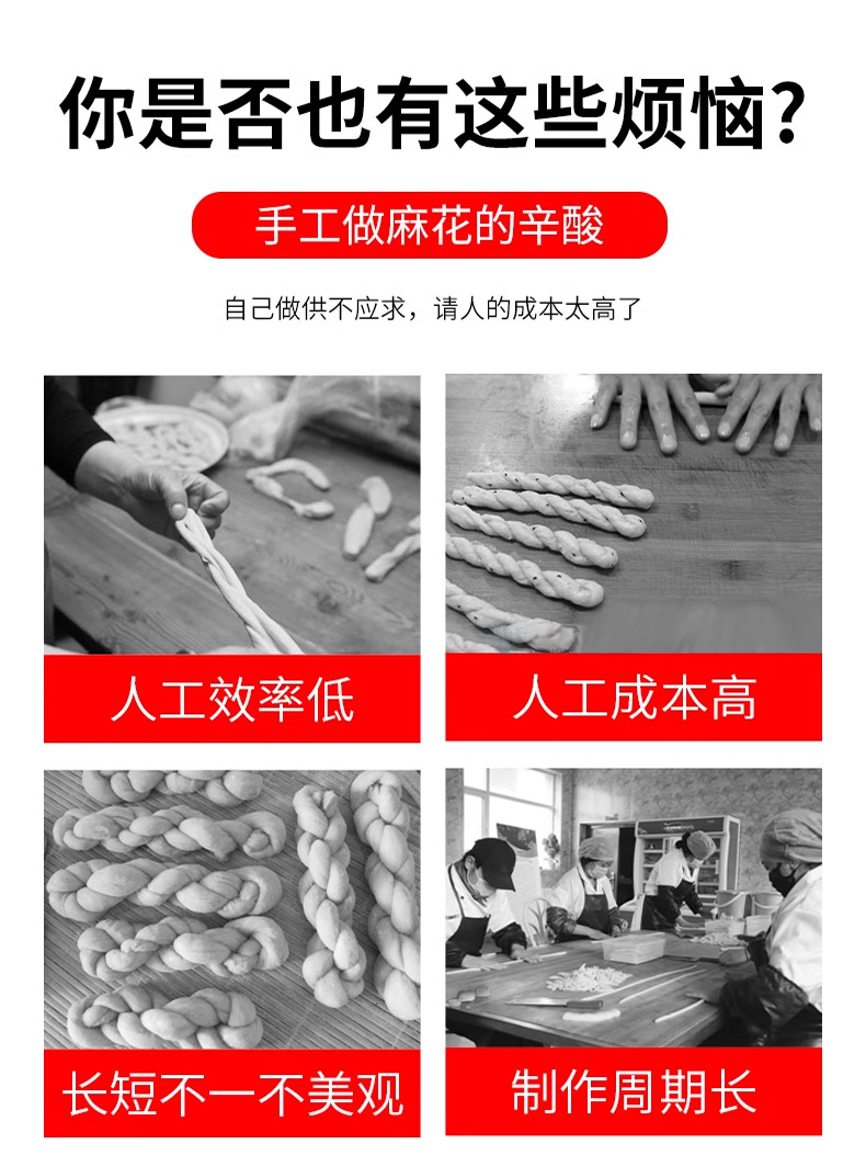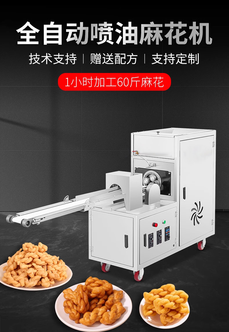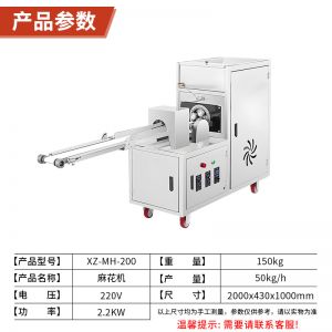 XZ-MH-200麻花機,技術支持、贈送配方、支持定制,1小時加工60斤麻花。切段均勺、且不粘面,麻花長短可調。可通過調節切刀時間、控制麻花的長度。通過精確控制成型,確保每根麻花大小均勻,外觀一致,提高產品競爭力。