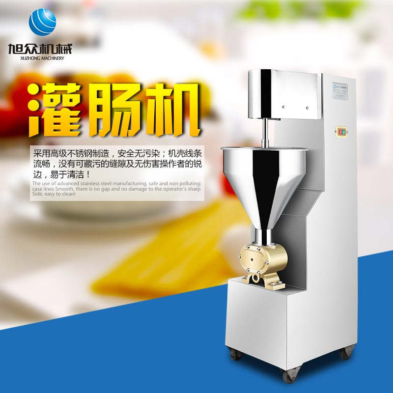 SZ-200灌腸機(jī),適合灌制各種香腸、紅腸、臘腸及糊狀制品。本機(jī)使用敞開式不銹鋼料斗,適用于連續(xù)添加物料;與灌裝手接觸部件全部采用優(yōu)質(zhì)不銹鋼制作以防生銹;該機(jī)自動(dòng)貨程度高,技術(shù)先進(jìn)、性能穩(wěn)定、操作簡(jiǎn)便、工作效率高,具有不破壞物料成份,保質(zhì)、保鮮等特點(diǎn)。