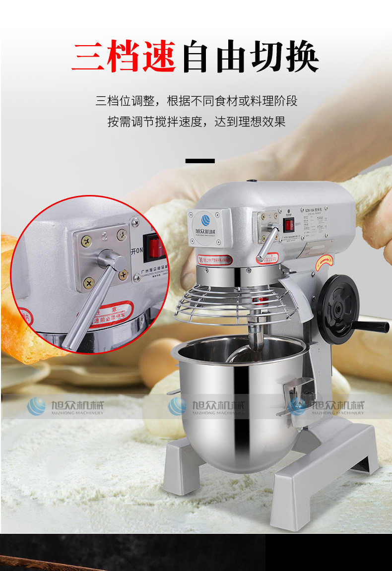 SZM-10A攪拌機,三檔速自由切換。三檔位調整,根據不同食材或料理階段按需調節攪拌速度,達到理想效果。強勁動力,源于強芯配置純銅電機,滿足高強度需求,堅固耐用大功率電機,澎湃動力,和面有力更均勻。