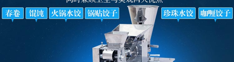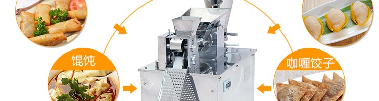 JGB-120-5B型餃子機,本機是一款可生產各種肉餡、肉菜混合餡、全菜餡及其他種餡餃子的設備。一機多用途,只要更換模具,就可制作不同的食品,如春卷、餛飩、咖喱角、鍋貼等。適用于賓館、飯店、餐廳、團體食堂加工,幼兒園、速凍餃子生產。