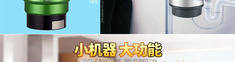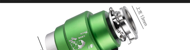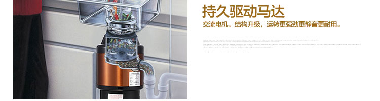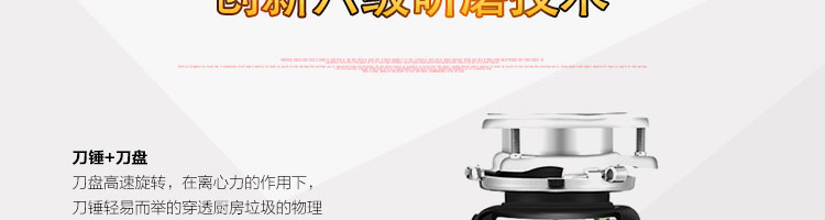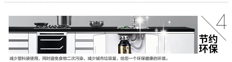 DCLQ38-廚房垃圾處理器,該機擁有獨特的粉碎功能,使所有垃圾研磨吸毒真正低于3毫米,用戶不用為管道堵塞而煩惱,粉碎后粗、細兩種垃圾通過濾孔自動分離,成漿狀的細垃圾隨水流流入管道,粗的垃圾會稍停留在研磨倉繼續粉碎,形成粉末狀后,再隨水流流入管道,客戶可以放心使用。