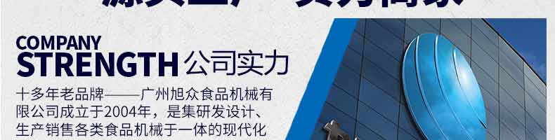 廣州旭眾食品機械有限公司是一家集科研開發(fā),生產設計,營銷服務為一體的現代化生產企業(yè)?,F代化生產車間,精湛制造技術,所產機械歷經市場重重考驗,不斷贏得海內外客戶的贊譽。