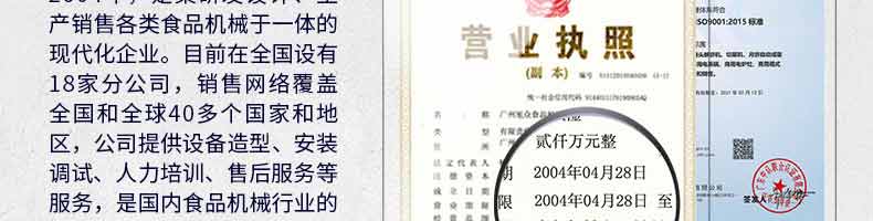 廣州旭眾食品機(jī)械有限公司是一家集科研開發(fā),生產(chǎn)設(shè)計(jì),營銷服務(wù)為一體的現(xiàn)代化生產(chǎn)企業(yè)?,F(xiàn)代化生產(chǎn)車間,精湛制造技術(shù),所產(chǎn)機(jī)械歷經(jīng)市場重重考驗(yàn),不斷贏得海內(nèi)外客戶的贊譽(yù)。