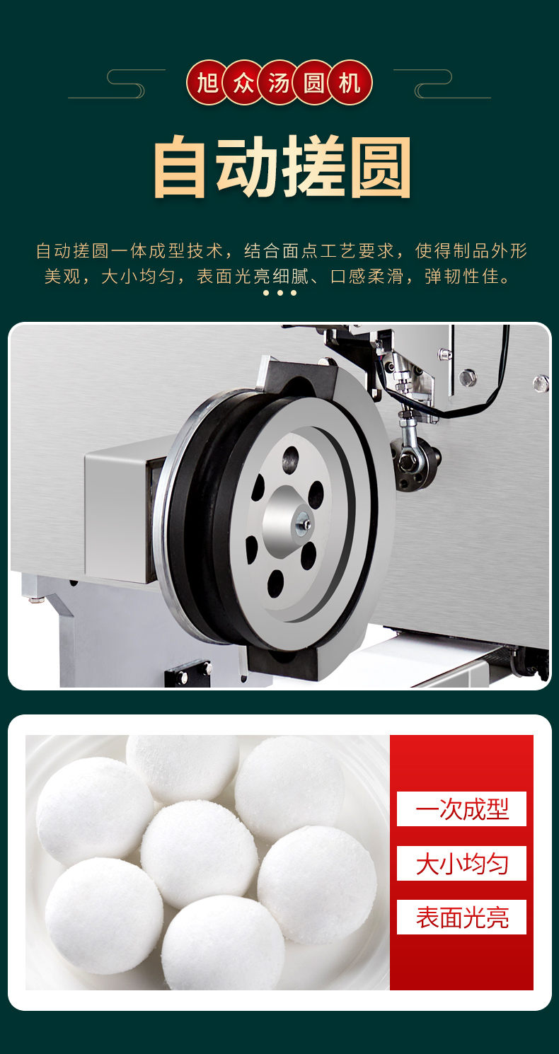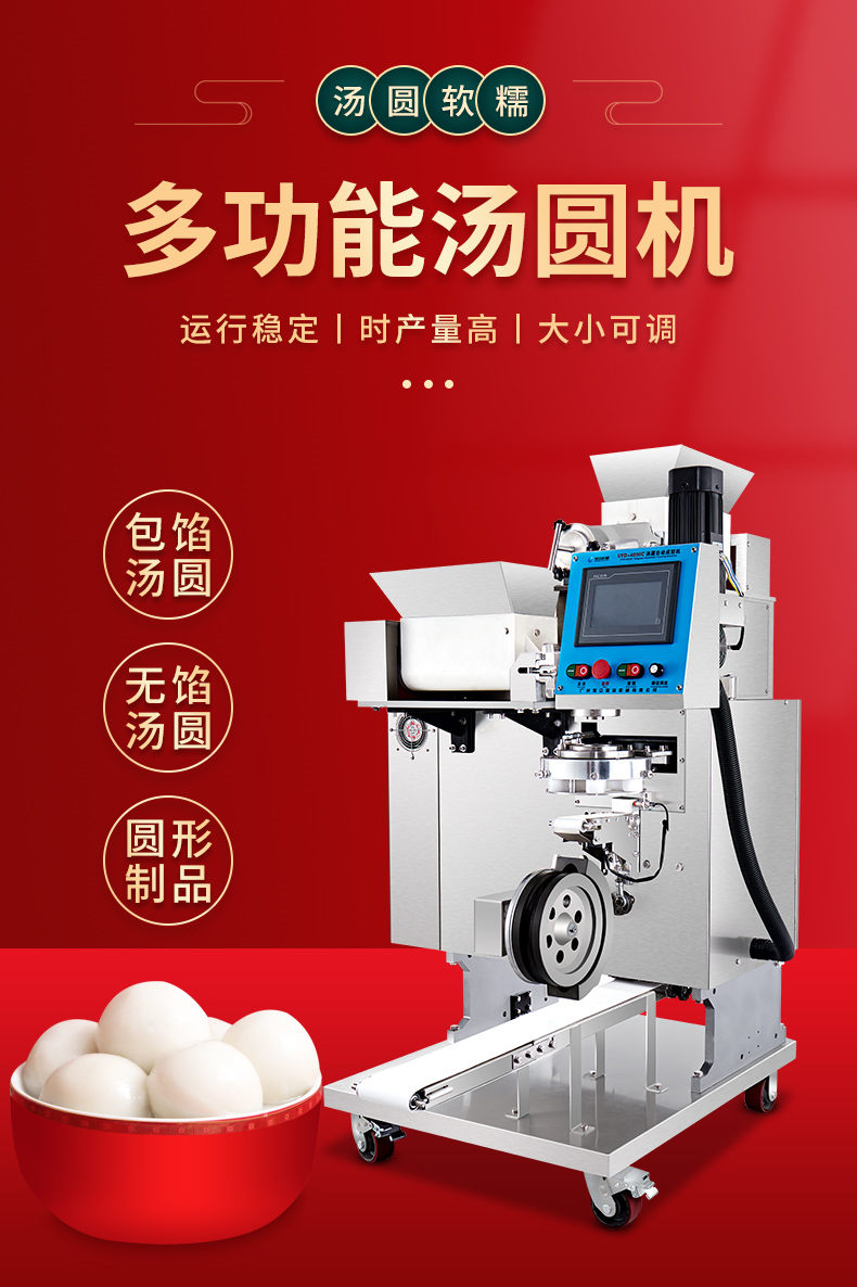4000C湯圓機,多功能湯圓機,運行穩定、時產量高、大小可調。制品多樣性生產各種大小規格不同的有餡湯圓,無餡湯圓、豆沙包、南瓜餅,芝麻球,地瓜丸,香芋丸,葉兒粑,青團,粘豆包等。