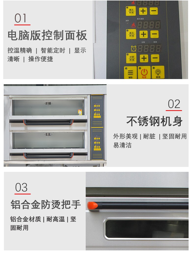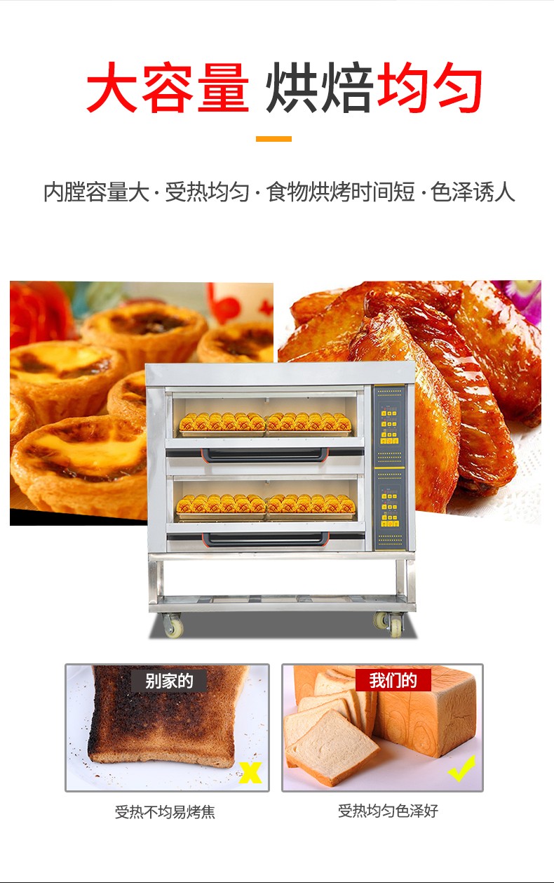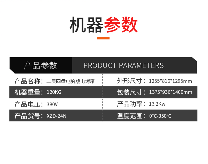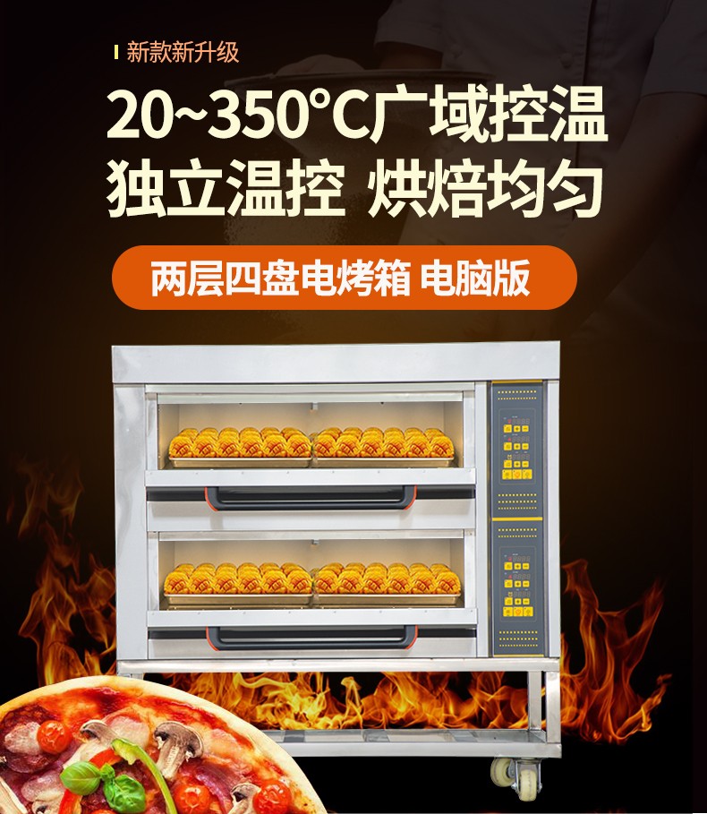 名稱二層四盤電腦版電烤箱 電源380V 功率13.2Kw 產量 尺寸1255*816*1295mm 重量120KG 規格兩層四盤 其他