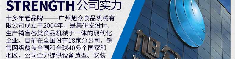 廣州旭眾食品機械有限公司是一家集科研開發,生產設計,營銷服務為一體的現代化生產企業?,F代化生產車間,精湛制造技術,所產機械歷經市場重重考驗,不斷贏得海內外客戶的贊譽。