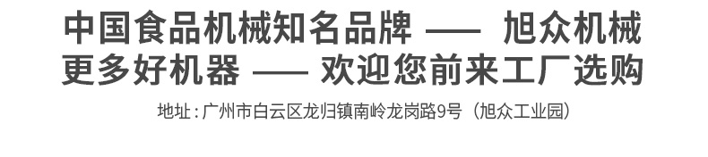 廣州旭眾食品機(jī)械有限公司是一家集科研開(kāi)發(fā),生產(chǎn)設(shè)計(jì),營(yíng)銷服務(wù)為一體的現(xiàn)代化生產(chǎn)企業(yè)。現(xiàn)代化生產(chǎn)車間,精湛制造技術(shù),所產(chǎn)機(jī)械歷經(jīng)市場(chǎng)重重考驗(yàn),不斷贏得海內(nèi)外客戶的贊譽(yù)。