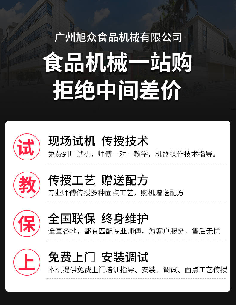 廣州旭眾食品機(jī)械有限公司是一家集科研開(kāi)發(fā),生產(chǎn)設(shè)計(jì),營(yíng)銷(xiāo)服務(wù)為一體的現(xiàn)代化生產(chǎn)企業(yè)。現(xiàn)代化生產(chǎn)車(chē)間,精湛制造技術(shù),所產(chǎn)機(jī)械歷經(jīng)市場(chǎng)重重考驗(yàn),不斷贏(yíng)得海內(nèi)外客戶(hù)的贊譽(yù)。