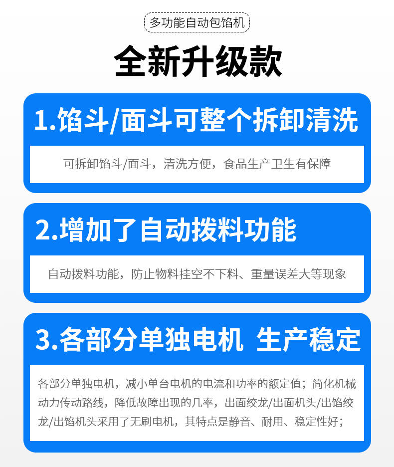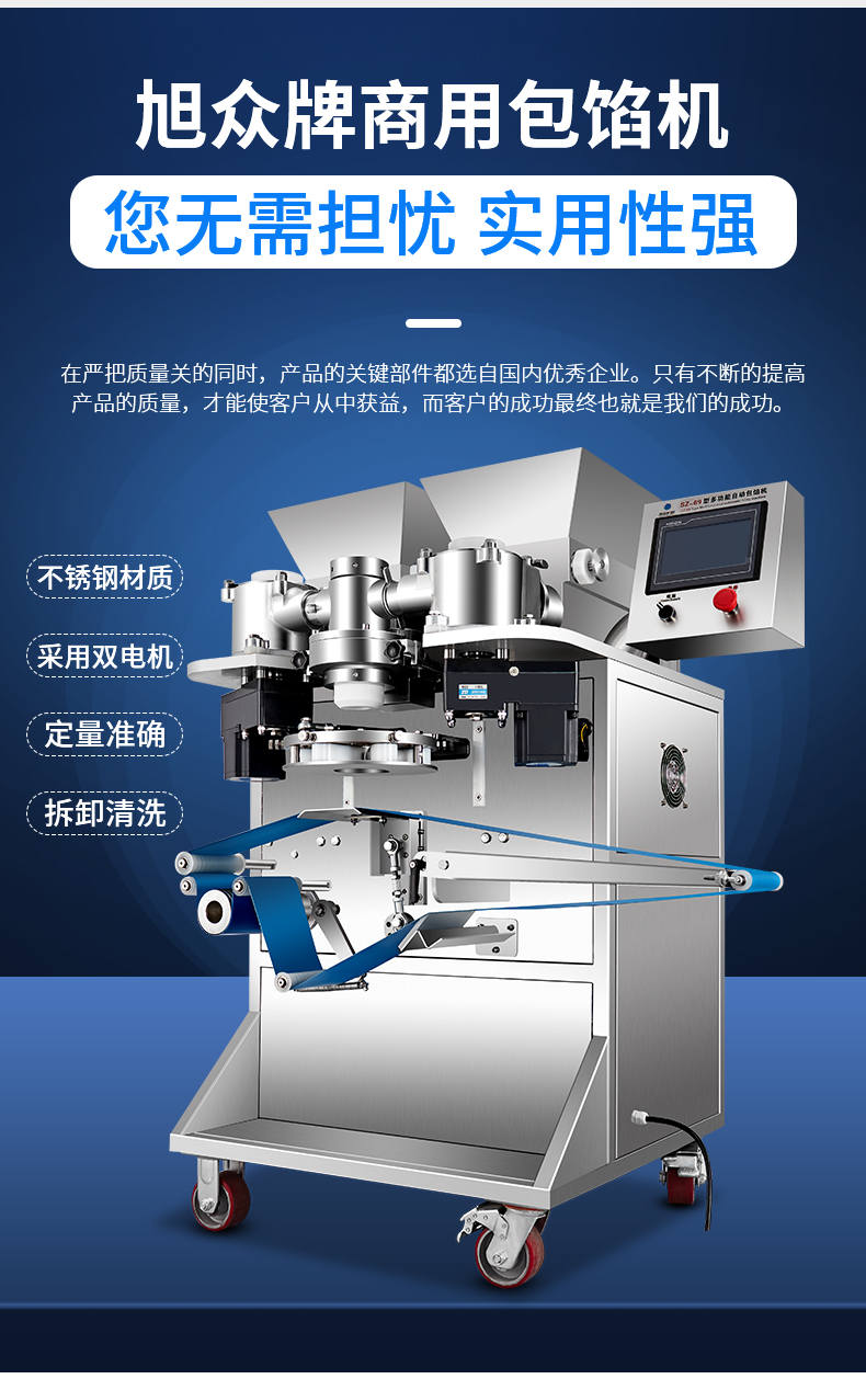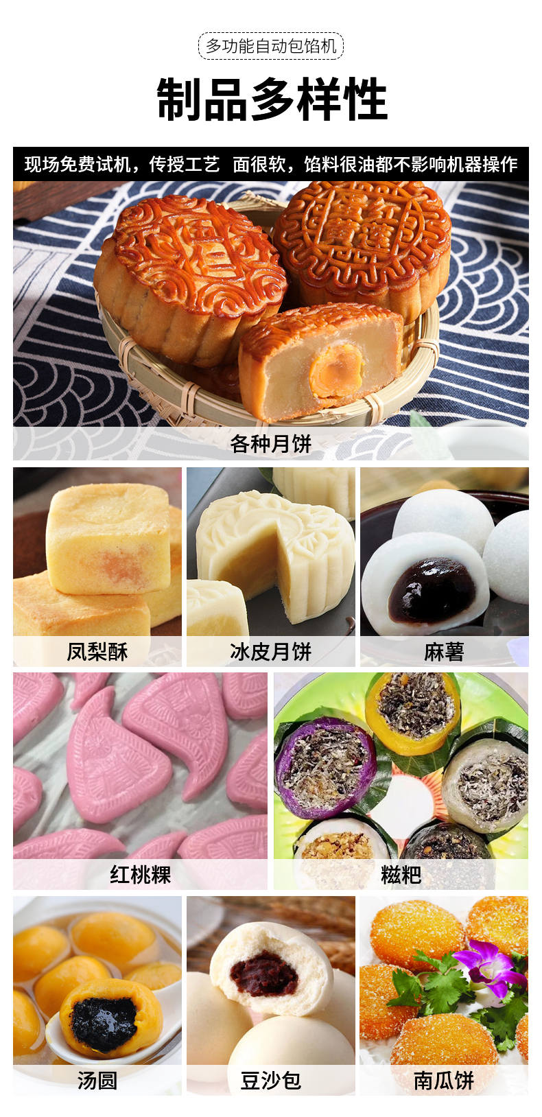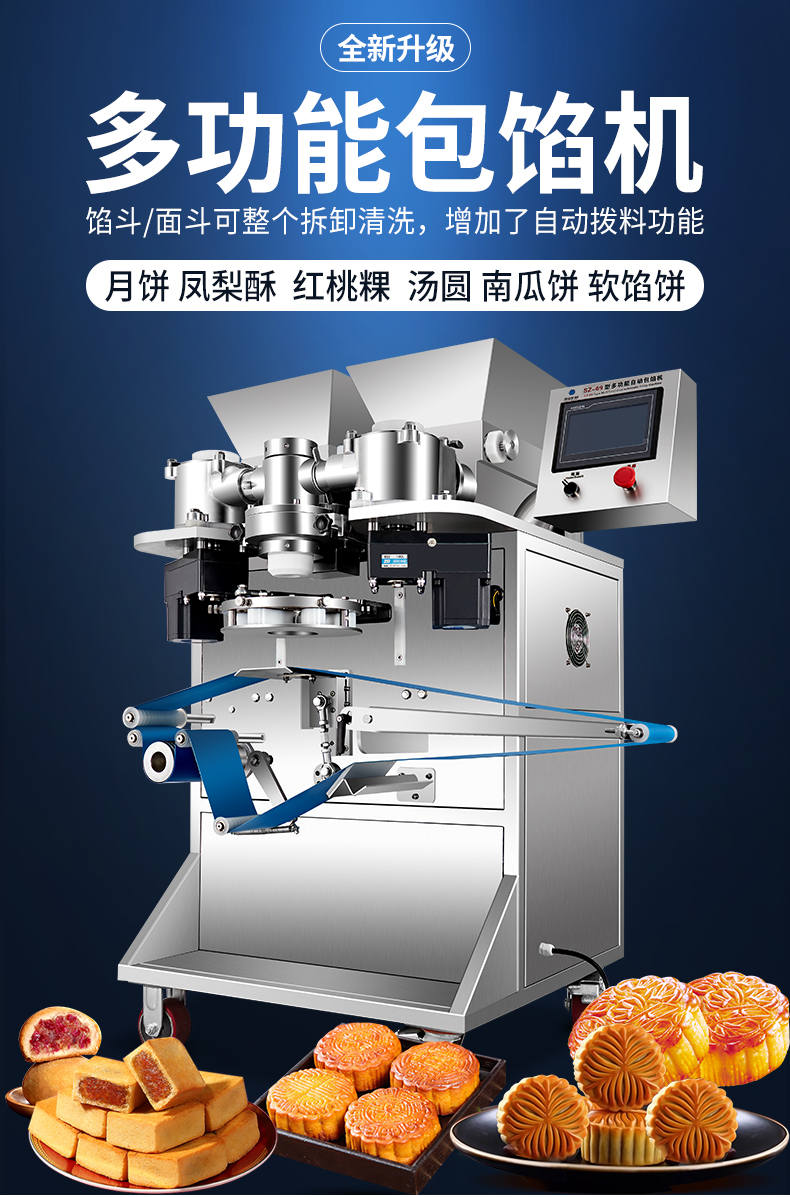 SZ-69型多功能自動(dòng)包餡機(jī),餡斗/面斗,可整個(gè)拆卸清洗,增加了自動(dòng)拔料功能。月餅鳳梨酥紅桃裸湯圓南瓜餅軟餡餅。在嚴(yán)把質(zhì)量關(guān)的同時(shí),產(chǎn)品的關(guān)鍵部件都選自國(guó)內(nèi)優(yōu)秀企業(yè)。只有不斷的提高產(chǎn)品的質(zhì)量,才能使客戶(hù)從中獲益,而客戶(hù)的成功最終也就是我們的成功。