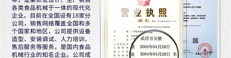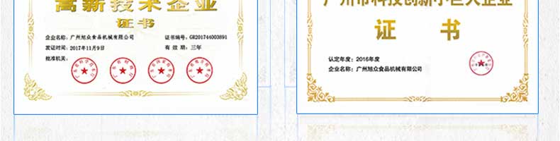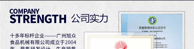 廣州旭眾食品機械有限公司是一家集科研開發,生產設計,營銷服務為一體的現代化生產企業。現代化生產車間,精湛制造技術,所產機械歷經市場重重考驗,不斷贏得海內外客戶的贊譽。